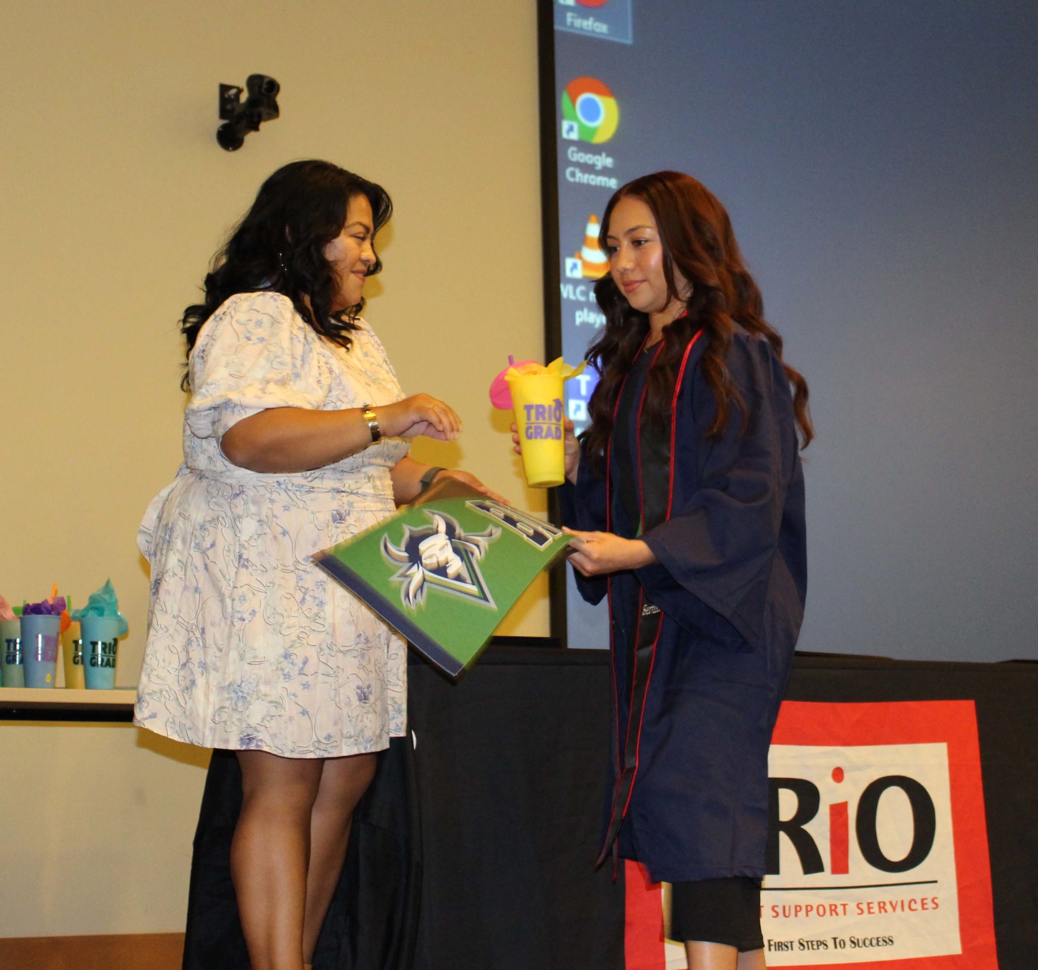 “This class of TRIO graduates is 58 Vikings strong and everyone who works at the college is incredibly proud of you. In the time that you have been here, you have grown, not only in knowledge, but in confidence,” said President Tweedy. “But a TRIO graduate is special in other ways. You have reached this accomplishment having faced obstacles and barriers that could have prevented your success. As you faced those (obstacles and barriers) you came to understand that you did not have to do it alone. At your side were your peers who were sharing this experience with you, as well as, many trusted counselors and guides who knew how to add light to what may have seemed a dark, uncertain path. Now, here you are, poised to graduate.”
